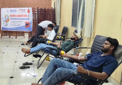 मैट्स विश्वविद्यालय ने बिलासा ब्लड सेंटर के सहयोग से रक्तदान एवं स्वास्थ्य जांच शिविर का आयोजन किया