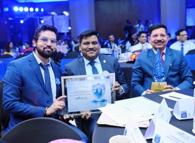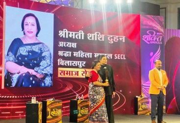 सुप्रसिद्ध अभिनेत्री एवं पूर्व मिस यूनिवर्स सुश्री सुष्मिता सेन के करकमलों से श्रद्धा महिला मण्डल अध्यक्षा श्रीमती शशि दुहन ने ग्रहण किया सम्मान